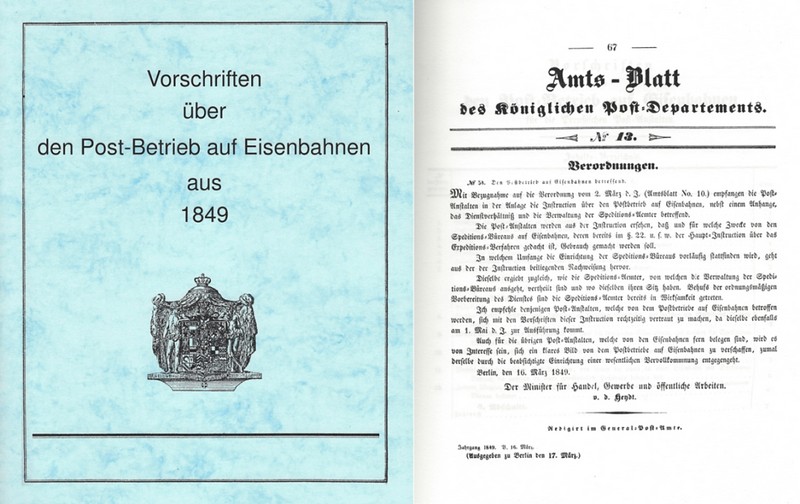 Nachdruck der Vorschriften von 1849 über den Post-Betrieb auf Eisenbahnen, 34 Seiten