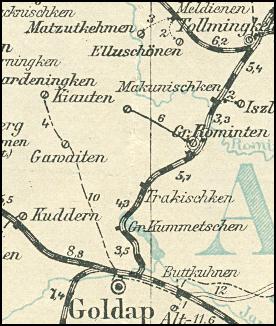 Orte liegen im Bereich der OPD Gumbinnen. Die Entfernung zwischen